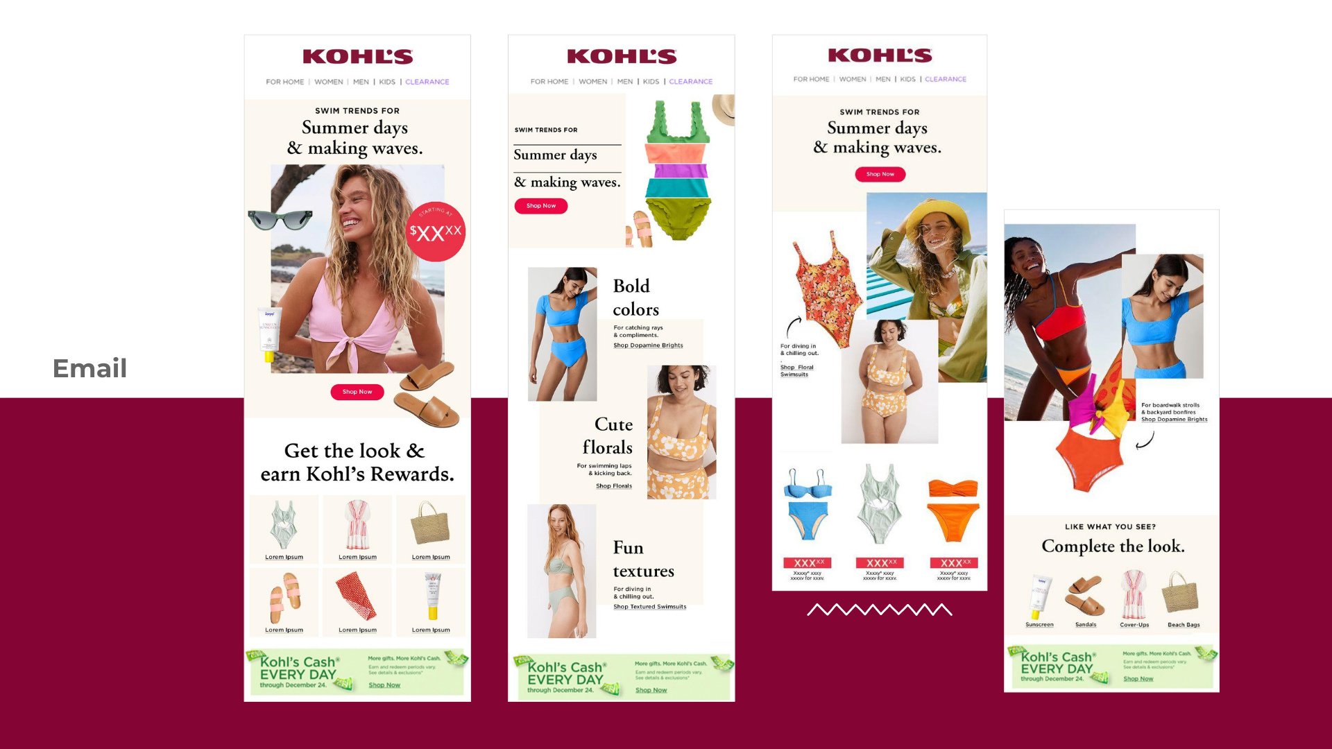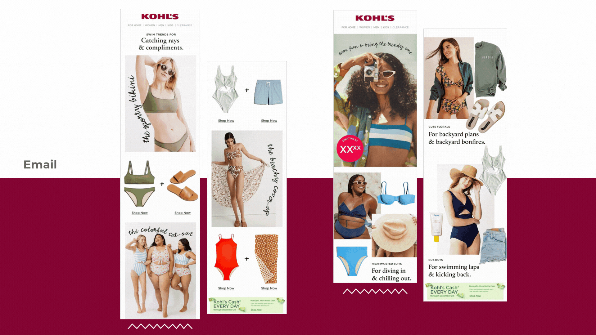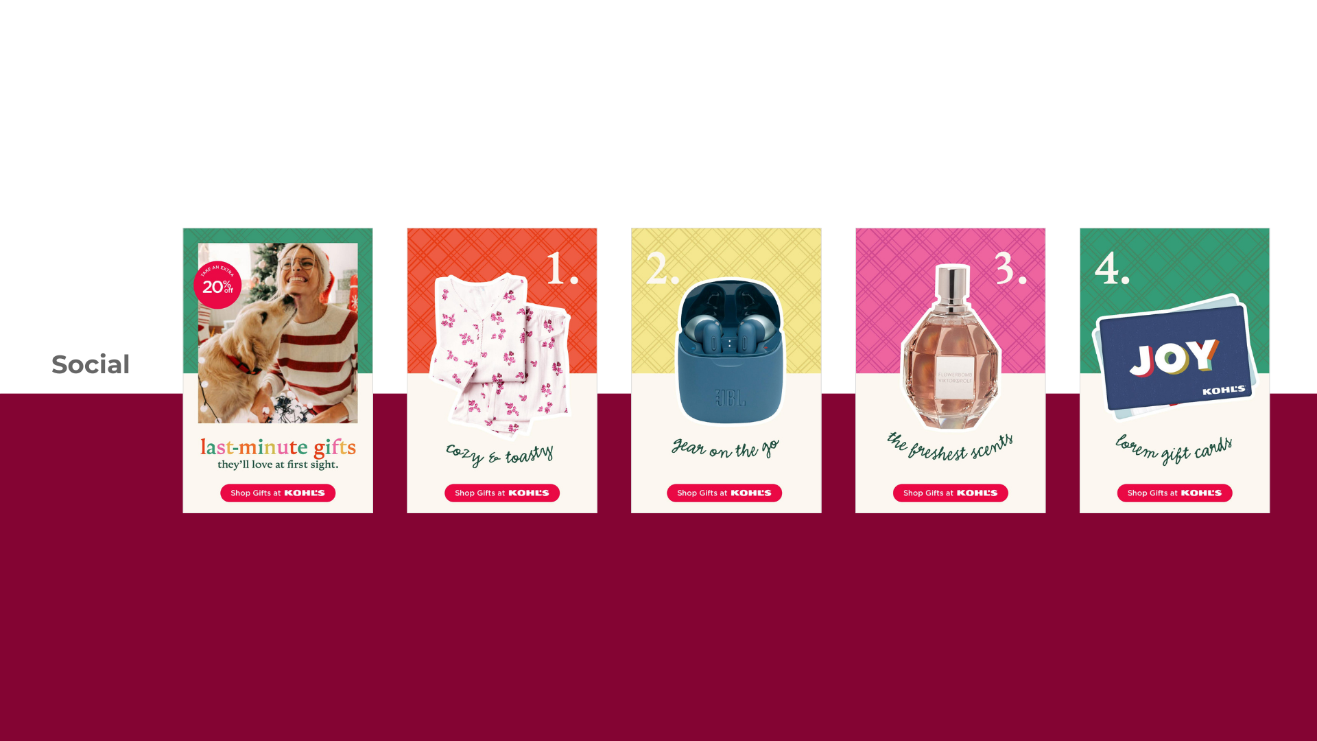 This collection features a series of concepts I led following Kohl’s 2023 rebrand, each designed to bring our refreshed identity to life across key content stories. Throughout the year, we supported strategic brand messages through cohesive visual direction, thoughtful storytelling, and a renewed focus on customer connection. These concepts demonstrate how the updated brand system flexed across categories and campaigns, while showcasing the creative leadership and cross-functional collaboration that shaped Kohl’s new expression in 2023.