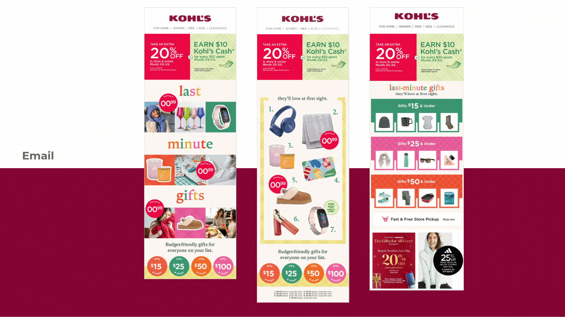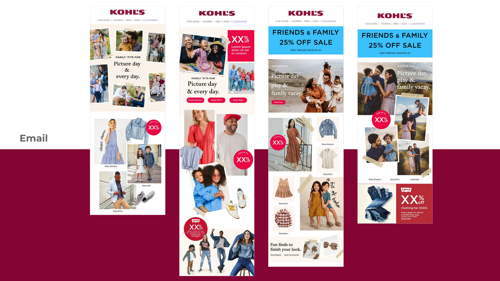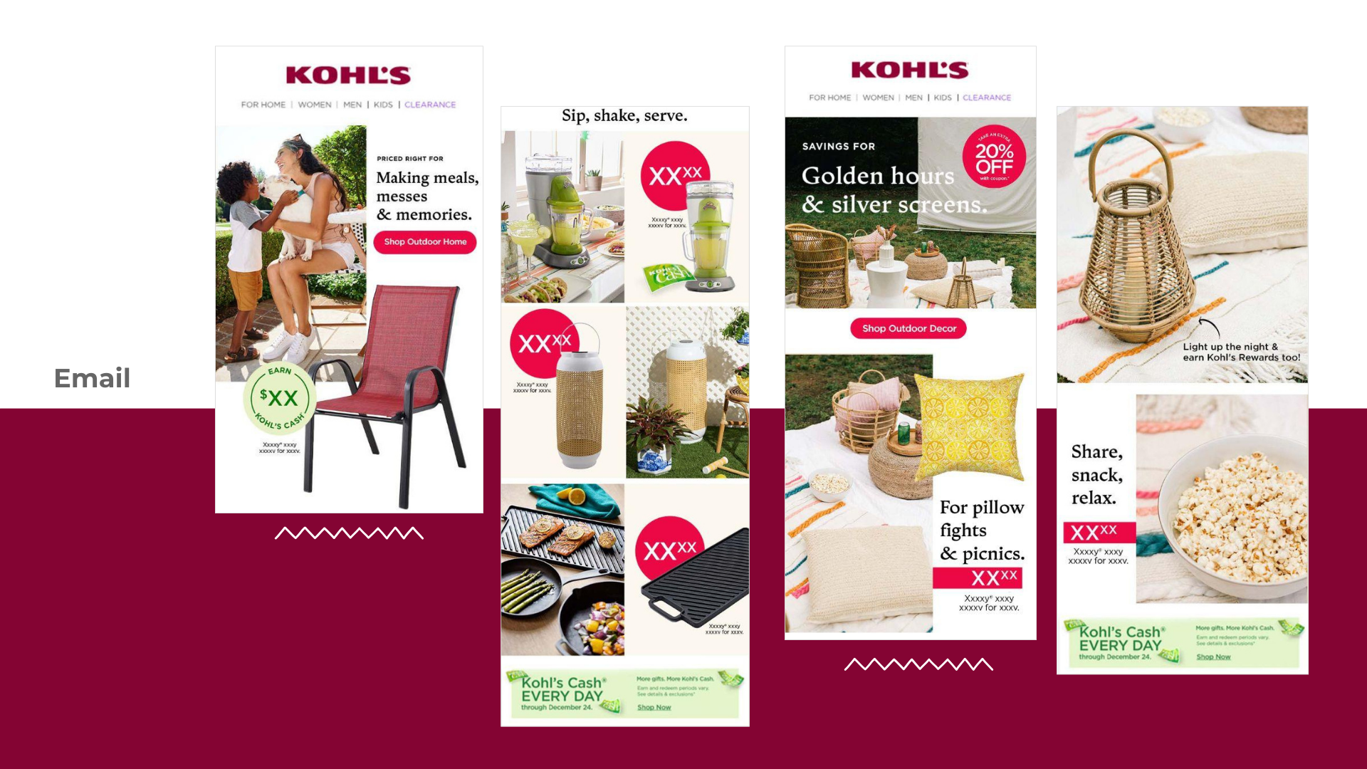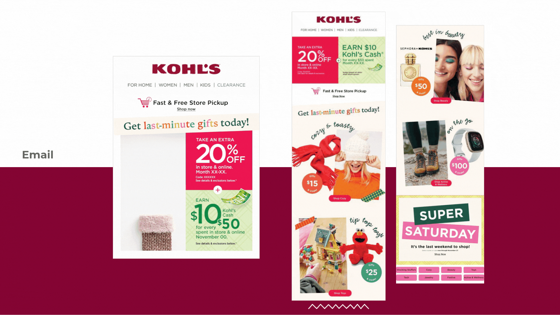 This collection features a series of concepts I led following Kohl’s 2023 rebrand, each designed to bring our refreshed identity to life across key content stories. Throughout the year, we supported strategic brand messages through cohesive visual direction, thoughtful storytelling, and a renewed focus on customer connection. These concepts demonstrate how the updated brand system flexed across categories and campaigns, while showcasing the creative leadership and cross-functional collaboration that shaped Kohl’s new expression in 2023.