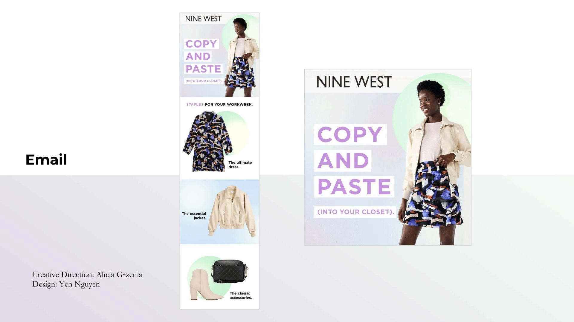 The work emphasized key elements of the Nine West brand while ensuring a cohesive narrative that connected online storytelling with in-store moments. The result was a polished, fashion-forward presentation that elevated the partnership and strengthened brand perception across channels.